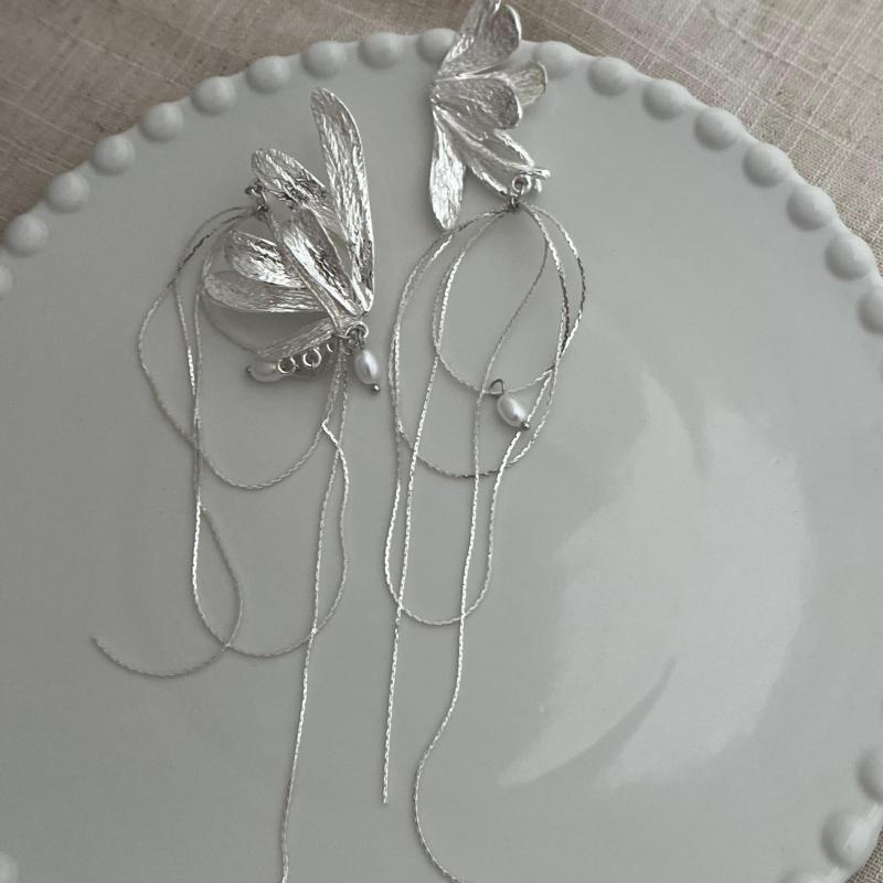 ピアス レディース s925 シルバー アレルギー対応 個性的 かわいい 抽象 ガール 流れるような タッセル イヤリング