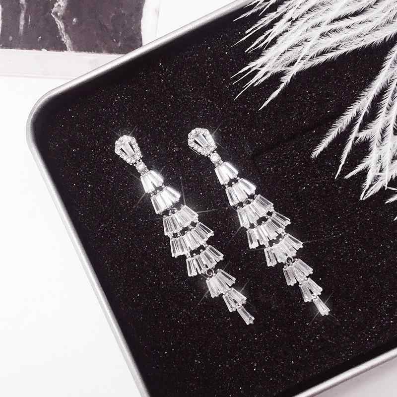 イヤリング レディース 水滴 楕円 ロング 合金 エレガント 揺れる ドロップ ジルコニア フリンジ 大ぶり 垂れ下がり アレルギー対応 パーティー プレゼント ギフト