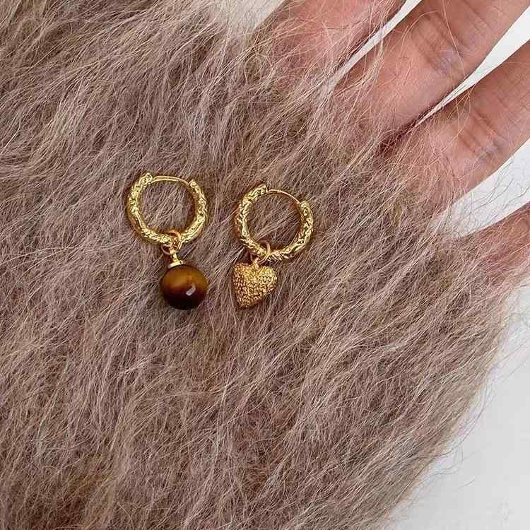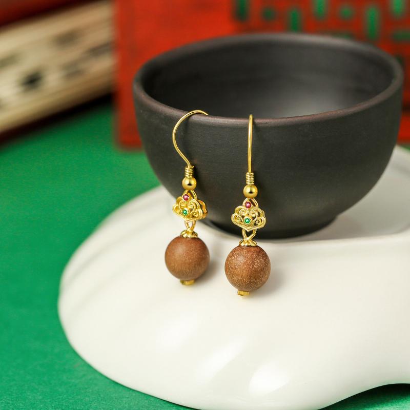 イヤリング レディース 新中式 925シルバー 鍍金 古法金 老山白檀 玉石 レトロ 銀製 フック型 女性用 S925 アクセサリー