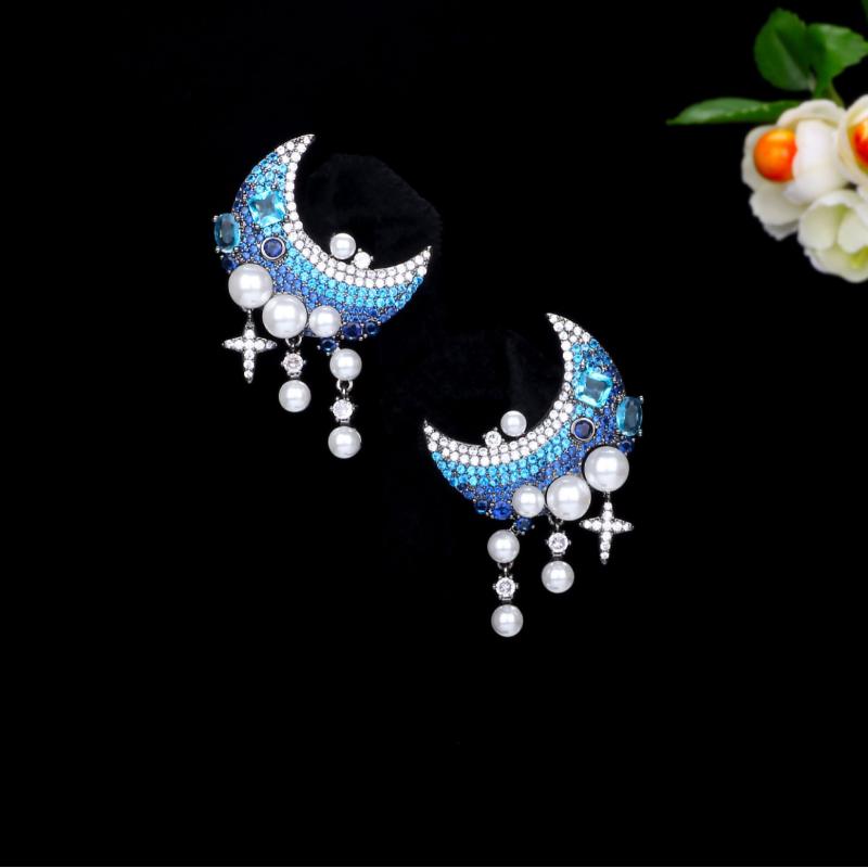 ピアス レディース 月 ジルコニア パール イヤリング アクセサリー ロマンチック 星空 欧米風 電気メッキ加工
