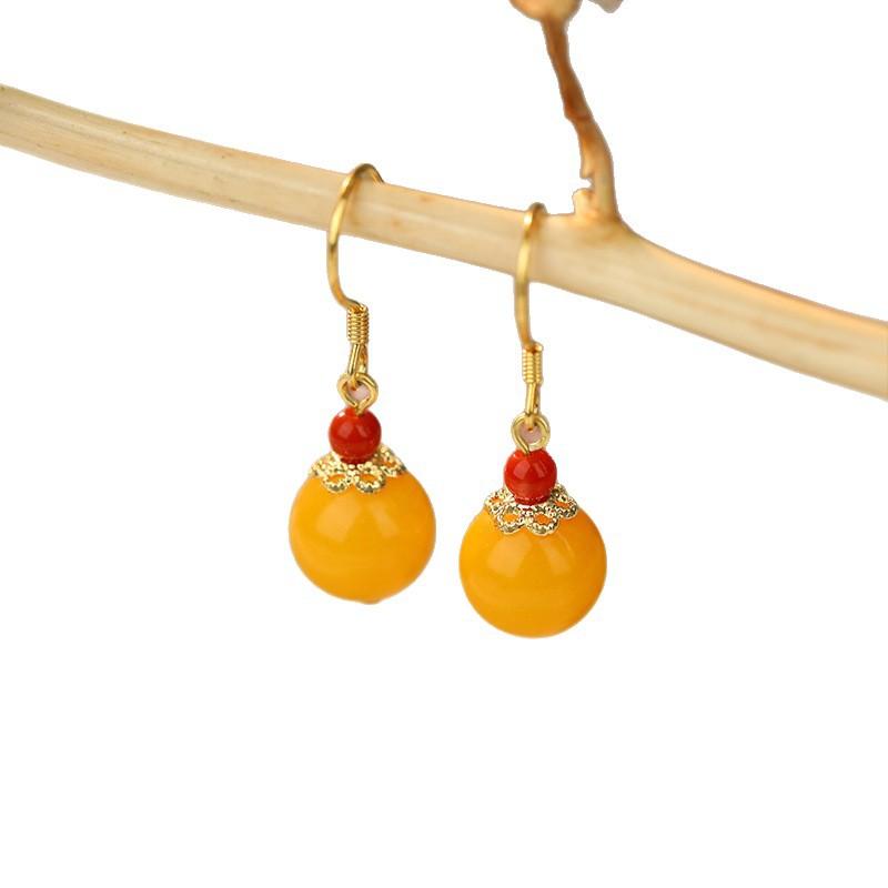 ピアス レディース 新中式 古風 天然 蜜蝋 シルバー925 イヤリング 和装 アクセサリー