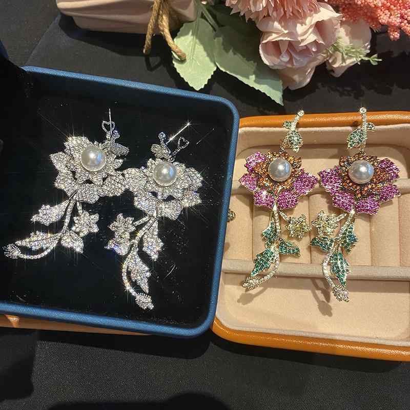 ピアス レディース 大振り ローズ バラ 花 フラワー カラフル ジルコニア S925 シルバー925 銀 アレルギー対応 結婚式 パーティー お呼ばれ かわいい・造型: 花卉・処理工?: ?石・?色: 白色, 彩色・流行元素: 花瓣・?格: 个性・?品??: 耳?・?用人群: 女式・流行元素分?: 植物花卉・材?: ?