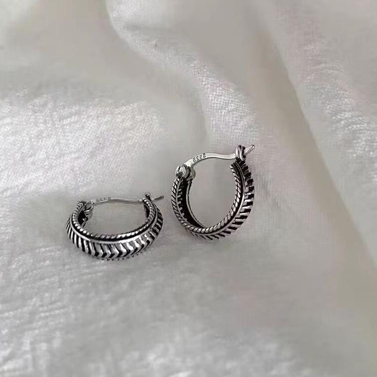 ピアス レディース シルバー925 ヴィンテージ風 イヤリング S925スターリングシルバー レトロ アンティーク調 シルバーアクセサリー フープピアス 韓国風 ファッション エスニック 軽量 ギフト