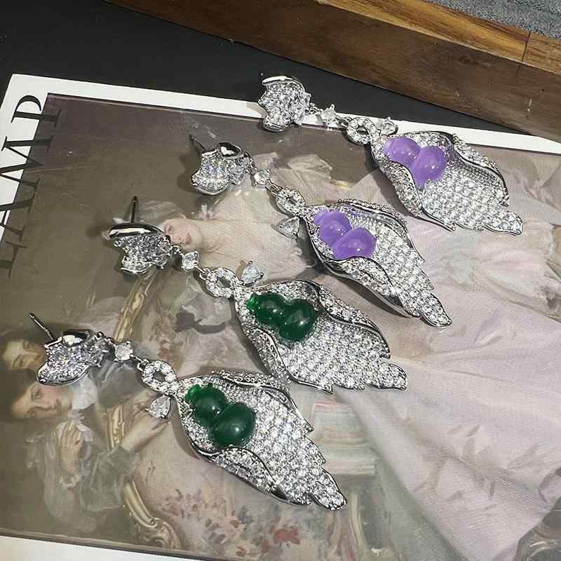 耳飾り レディース S925 葫芦 新中式 琉璃 ジルコニア 重工 エレガント 古典的 精緻 高級感 ファッション 国風