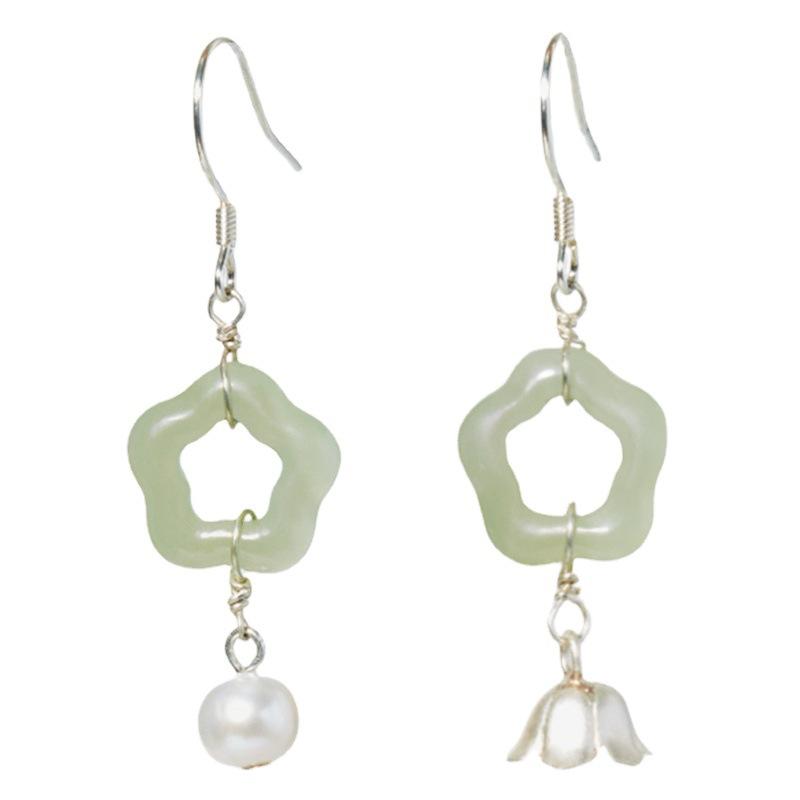 イヤリング レディース 新中式 和田玉 花 パール シルバー 小ぶり かわいい エレガント ギフト