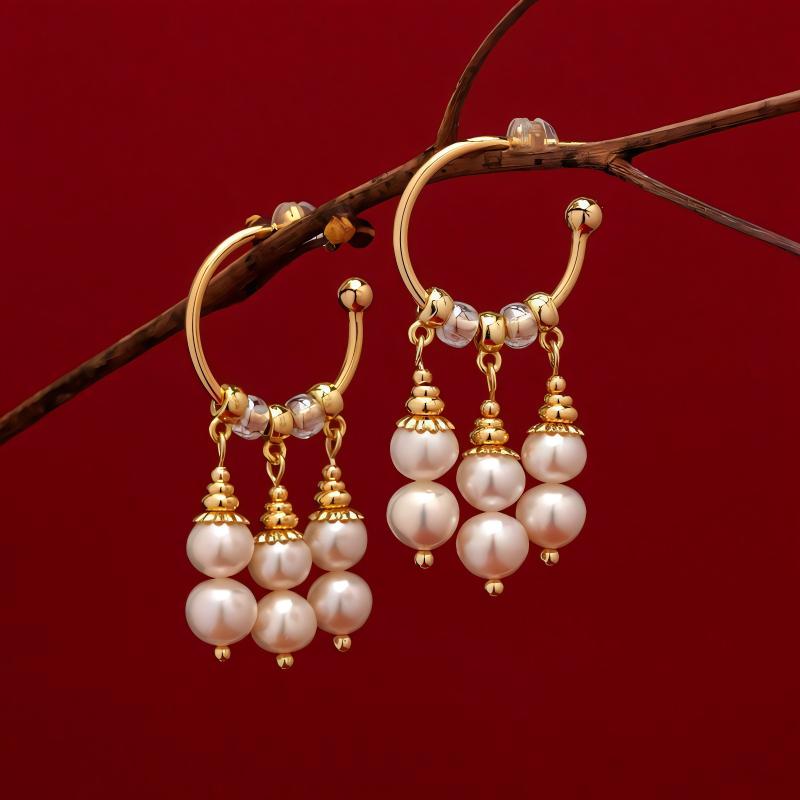 ピアス レディース 新中式 珠光 パール シルバー925 銀針 中華風 昭和レトロ 大ぶり シンプル エレガント アクセサリー ジュエリー・造型: 几何型・処理工芸: 彫刻・カラー: 金色・流行要素: パール・スタイル: レトロ・スタイル分類: オリジナルデザイン・製品カテゴリ: 耳飾り・対象: 女性