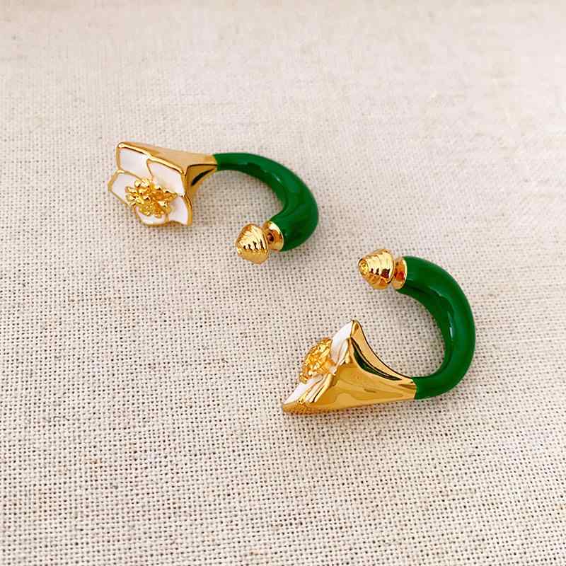 ピアス レディース イヤリング 山茶花 椿 エナメル 925シルバー 厚め 大ぶり レトロ ヴィンテージ 上品 かわいい アクセサリー