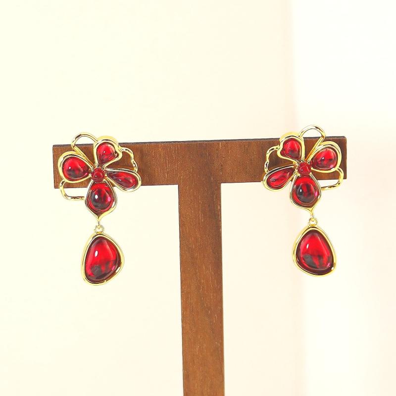 ピアス レディース 小さめ ジルコニア 花柄 赤色 上品 かわいい デザイン 電気メッキ加工 イヤリング アレルギー対応 結婚式 パーティー お呼ばれ