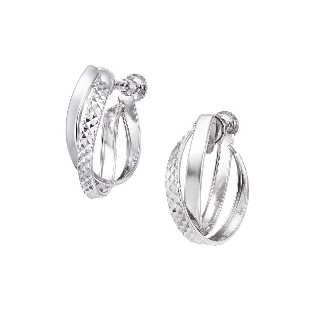 緩やかなふたつのウェーブラインがクロスする、エレガントなフープイヤリング。きらきらと輝くカットも印象的。いつものスタイルにモード感をプラスしたいときにおすすめです。地金素材:K10WG大きさ(縦×横):約15×13mm※サイズガイドはこちら※有料ケースはこちら