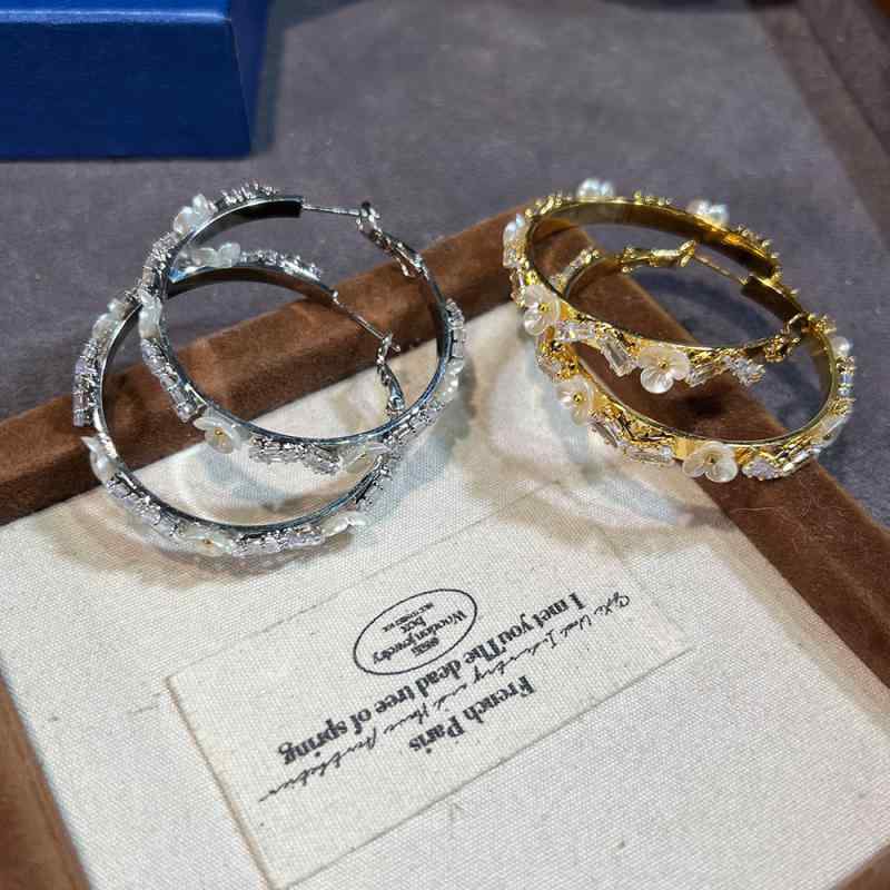 2イヤリング レディース フープピアス ジルコニア 花柄 円盤型 韓国風 かわいい 上品 アクセサリー