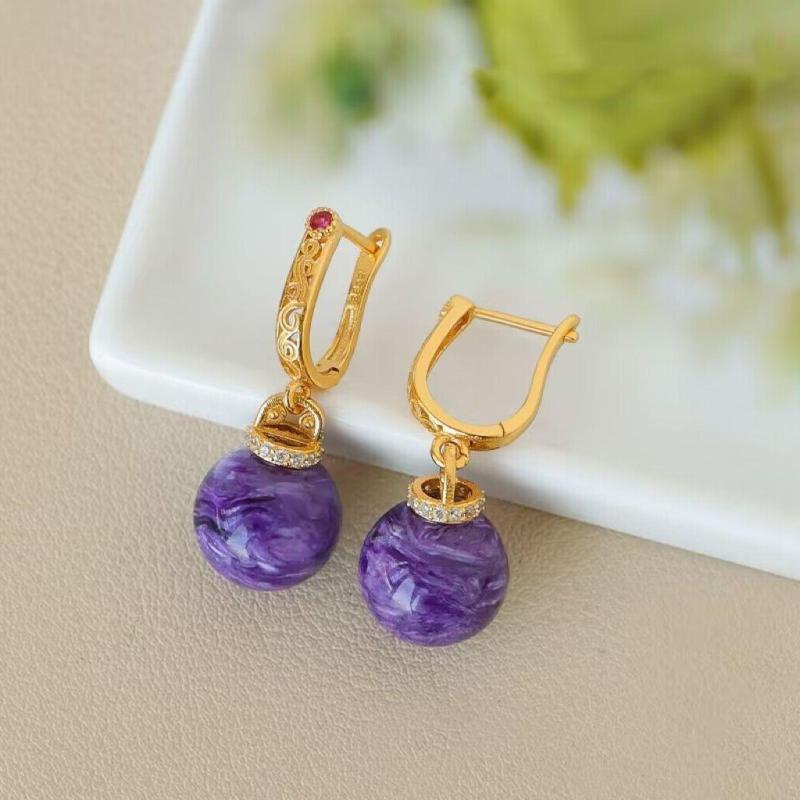 ピアス レディース S925 天然石 紫龍晶 高見え 電気メッキ加工 上品 イヤリング 春夏