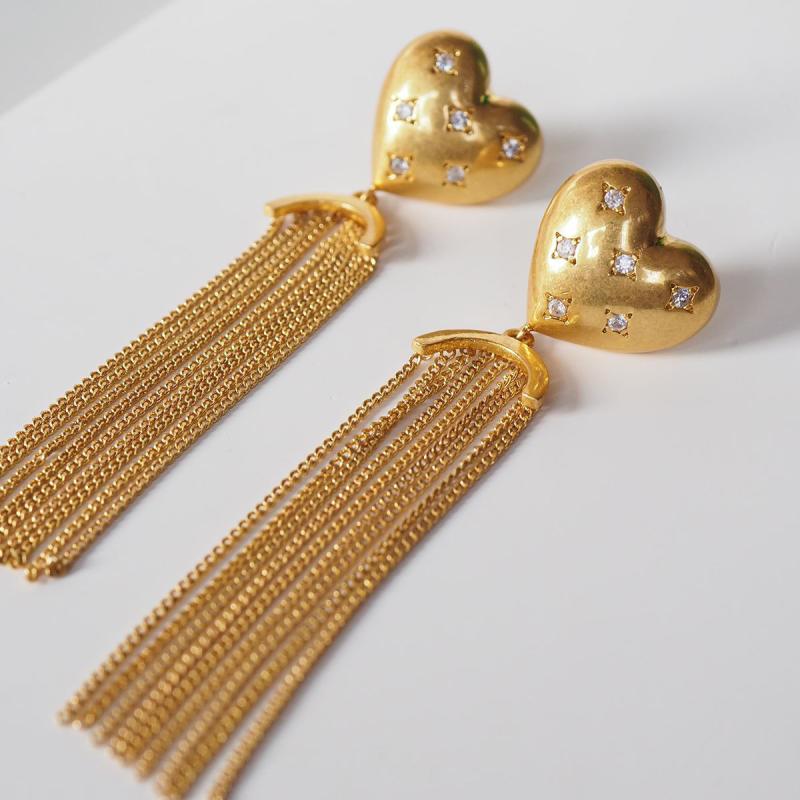 ピアス レディース 心型 ロング タッセル ゴールド 金色 レトロ 電気メッキ加工 ジルコニア イヤリング・造型: 心形・処理工芸: 電気メッキ・色: イヤリング・スタイル: フランス式レトロ・スタイル分類: 文芸復古・製品カテゴリ: イヤリング・対象者: 女性・流行要素分類: 形状/模様