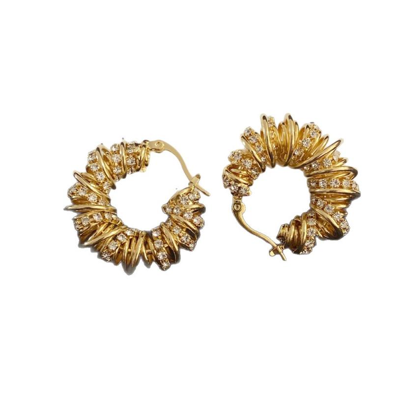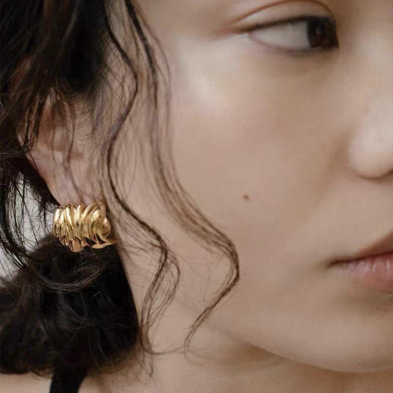 ピアス レディース 女性用 電気メッキ加工 ジルコニア 個性的 デザイン スプリング 巻き付け 編み込み イヤリング イヤーカフ アクセサリー ジュエリー