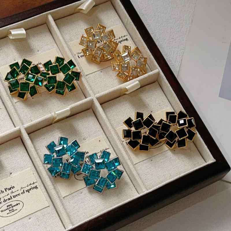 イヤリング レディース 大ぶり ジルコニア レトロ 幾何学模様 透かし彫り フラワー 花 スタッドピアス アクセサリー ジュエリー パーティー お呼ばれ 結婚式 二次会