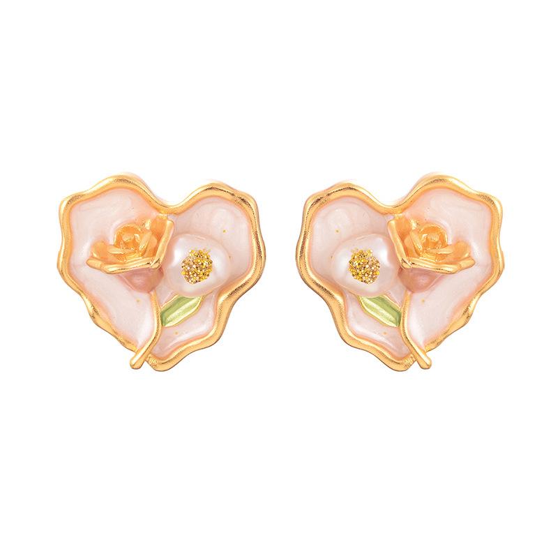 ピアス レディース バロック調 ハート ローズ 天然パール 油絵風 中古風 フレンチスタイル イヤリング