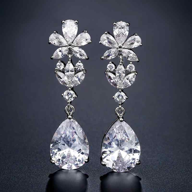 ピアス レディース クラシック レトロ ドロップ ジルコニア ブライダル イヤリング 幾何学 花柄 欧米 個性