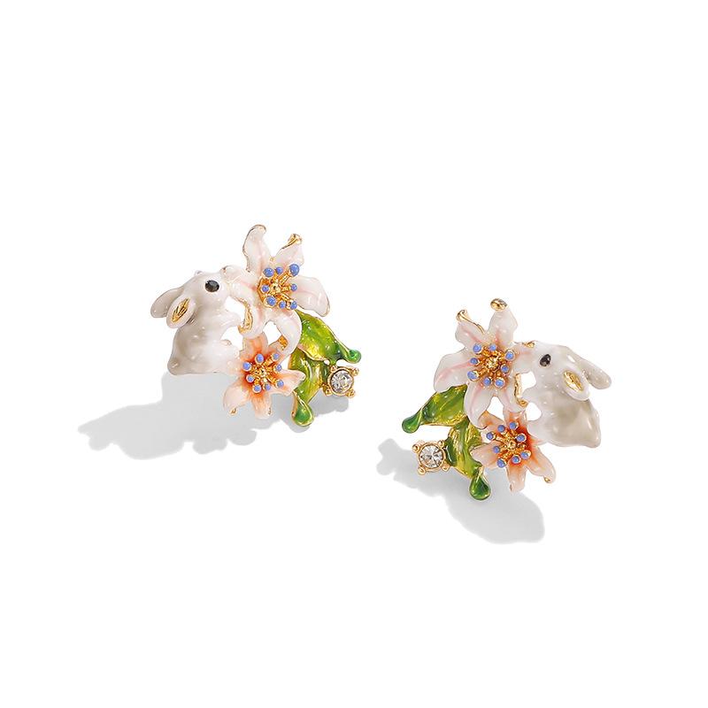 ピアス レディース うさぎ 灰色 グラデーション 花柄 シルバー925 針 ジルコニア エナメル イヤリング アクセサリー かわいい 上品 エレガント