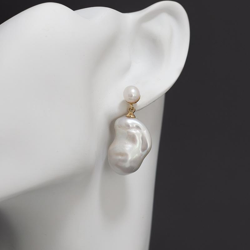 ピアス レディース バロックパール 淡水パール 手作り アクセサリー イヤリング 電気メッキ加工 14k 金
