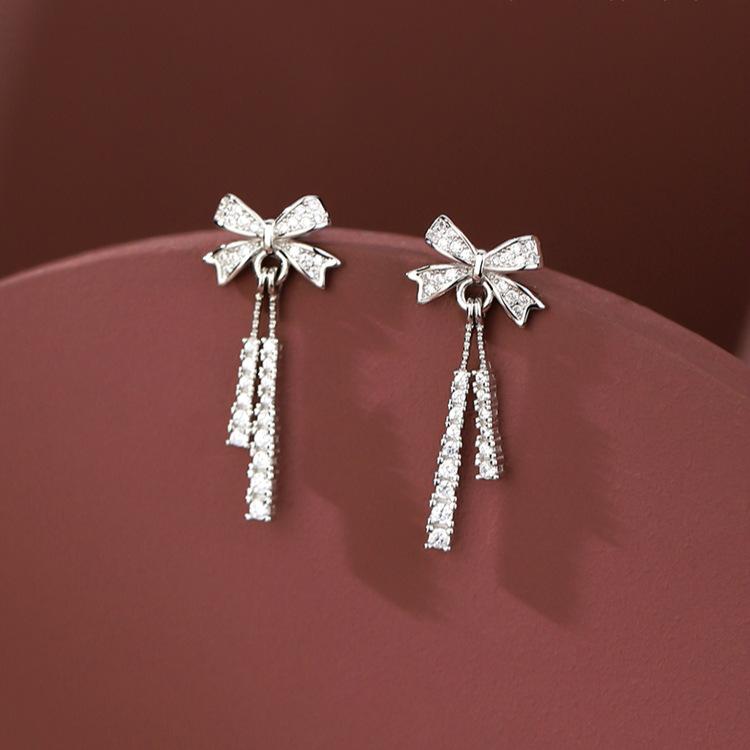 ピアス レディース シルバー925 蝶結び バタフライ タッセル 流れる 揺れる 小ぶり 高級感 デザイン かわいい おしゃれ 電気メッキ加工 トレンド アクセサリー