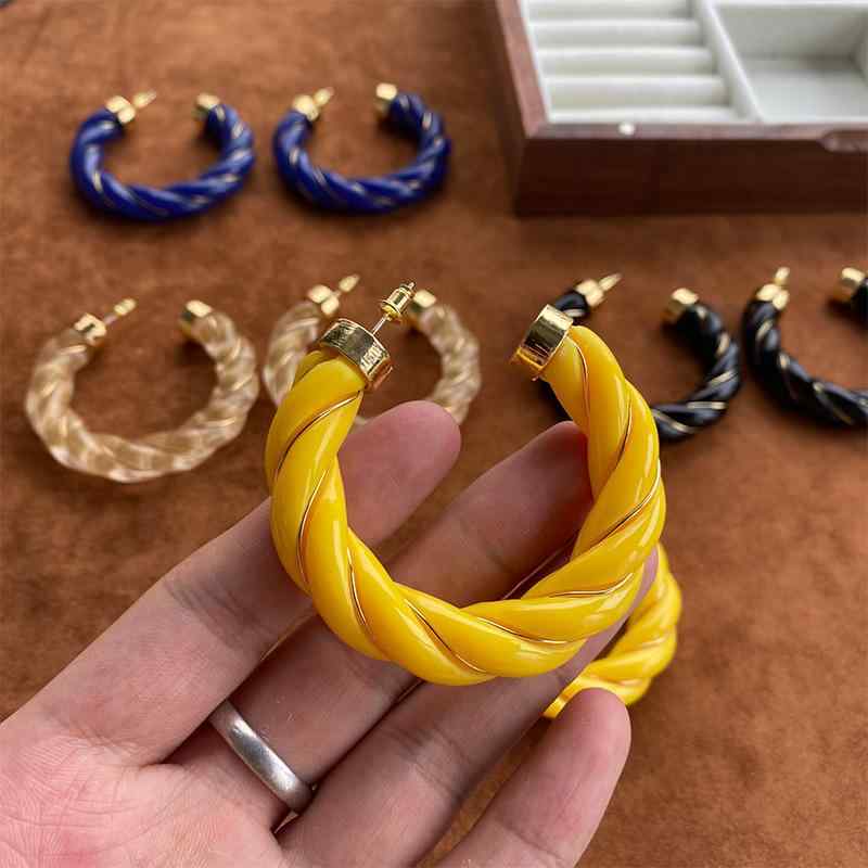 ピアス レディース 法式 ?古 イヤリング 樹脂 麻花 小ぶり シンプル アレルギー対応 百搭 小? 冷淡?