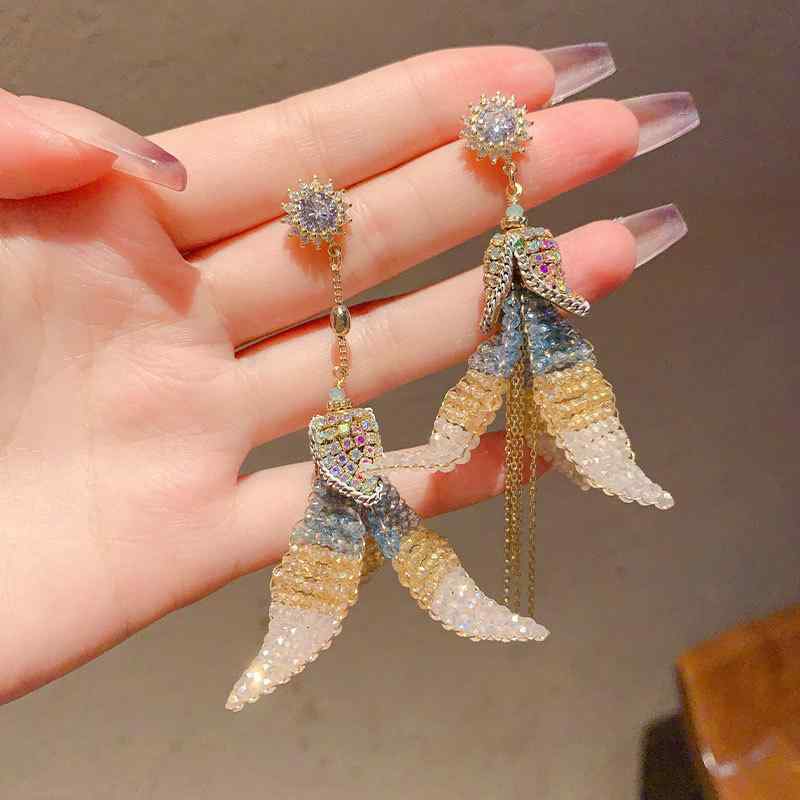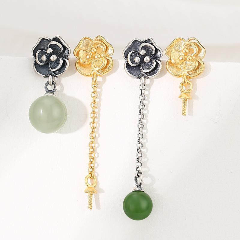イヤリング レディース レトロ フラワー ビーズ タッセル 高級感 優しい フェミニン アクセサリー ガーリー スタイル ソフト 素材 軽量 普段使い・カテゴリ: 耳飾・スタイル: 度假風・スタイル分類: 清新甜美・素材: ビーズ・形状: 花・加工: ・耳針素材: ステンレス・要素: 花びら・対象: 男女共通