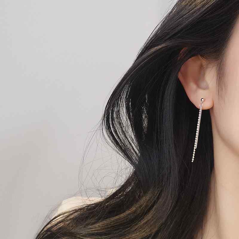 ピアス レディース シルバー925 ロング チェーン イヤリング スタッドピアス サークル 金属アレルギー対応 小顔効果 韓国風 アクセサリー 普段使い