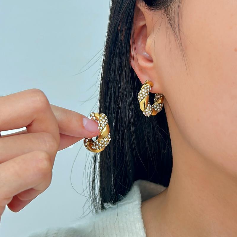 ピアス レディース U形 ジルコニア 麻花 ひねり 金属アレルギー対応 シルバー925 電気メッキ加工 オフィス 結婚式 パーティー プレゼント