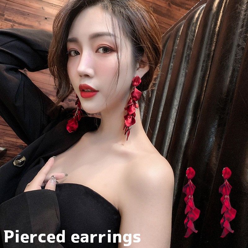 おしゃれなデザインのロングピアスです。 どんなファッションにも映える赤が素敵です! 【サイズについて】 画像をご参照ください。 【カラーについて】 生産ロットにより柄の出方や色の濃淡が異なる場合がございます。 お使いのモニターや撮影時の光の加減などにより 画像と実際の商品のカラーが異なる場合もございます。 予告なしにカラーやデザインなどの変更がある場合もございます。 【素材について】 合金