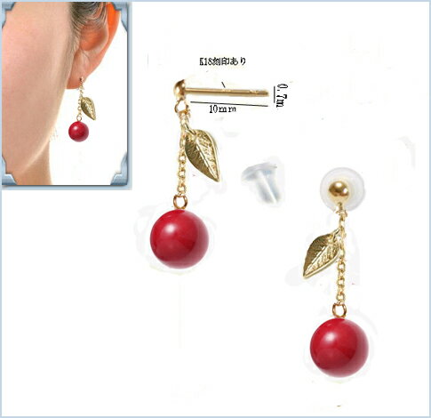 メール便で【送料無料】やや長めチェーンに大振り鮮やかなレッド珊瑚 可愛らしい葉っぱパーツをあしらった揺れ感のあるかわいいピアスです。ほどよい華やかさとキュートな雰囲気を演出しています。 天然石の為個体差あり※天然素材のため、色・サイズ・形状・内包物等の状態には個体差があります 18金イエローゴールド/YG18Kポストタイプ/針/K18刻印あり/国内産/0.7mmx10mm/福耳/シリコンキャッチ付き長さ:約26mm 約8mm赤珊瑚が加工あり、丸型ラウンドです葉モチーフ/チェーンが合金でゴールドトーンで、約5mmx7mm 【大切な人への贈り物として】 ご自分へのご褒美にお誕生日プレゼントや結婚記念日の贈り物としてはもちろん、クリスマスギフト、ホワイトデーのお返し、成人式、母の日、出産祝いなど、女性へのギフトに最適です。