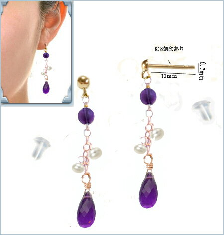 メール便【送料無料】耳元からすっとこぼれ落ちる雫のような、美しいロングピアス細かくカッティングされたドロップアメシストの透明感あふれる美しい色合いと、ホワイト淡水パールの清楚な輝きがマッチ。身のこなしとともに揺れて、 しっかりと存在感をアピールしますチャーミングなアクセントをプラスするアイテムです18金イエローゴールド/YG18Kポストタイプ/針/(K18刻印あり)/国内産/0.7mmx10mm/福耳可/シリコンキャッチ付き2.5〜3mm白淡水真珠5mmx7mmパープルアメジスト/紫水晶チェーンが合金でゴールドトーンです約4mmアメジストが濃いめで、2月誕生石です長さ約3.4cm天然石の為個体差あり真珠6月誕生石宝石言葉:健康、長寿、富アメジスト2月誕生石宝石言葉:誠実、心の平和 。これらの情報は古来より受け継がれてきた言い伝えです、効果等を保証するものではありません 【大切な人への贈り物として】 ご自分へのご褒美にお誕生日プレゼントや結婚記念日の贈り物としてはもちろん、クリスマスギフト、ホワイトデーのお返し、成人式、母の日、出産祝いなど、女性へのギフトに最適です。