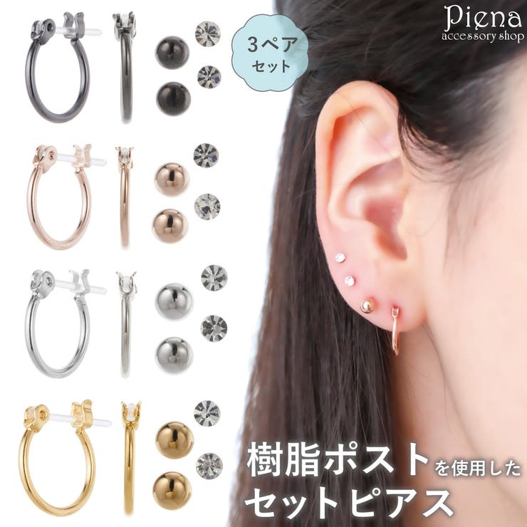 素材:真鍮製(プラチナロジウム/ゴールド/ピンクゴールドブラック/コーティング)ラインストーンフープピアス スタッドピアス(ポリプロピレン製)サイズ:リング:縦約11.5mm×横1.2mm×厚み1.2mmボール:約4mmストーン:約2.4mmポスト太さ/長さ:0.9mm/10mm小さなフープピアスとストーン、メタルボールペアの6点セットピアスです。小さめパーツばかりなので、複数ピアスホールを開けている方はもちろんピアスコーデとしてお得なセットです。大人らしさ、女性らしさが詰まったアクセントになるデザイン。フープのさりげない揺れとストーンの煌めき、メタルボールの輝きで印象的な耳元を作り上げます。※ノンアレルギーのポリプロピレン製ポストを使用していますので金属アレルギーの方も安心してお使いいただけます。返品・交換について購入後の交換は受け付けておりません。予めご了承ください。返品を希望される場合は購入履歴一覧の「ショップへの問い合わせ」よりお問い合わせください。=========================複数配送先指定について1件の注文に対して、異なる住所への配送は対応出来かねます。恐れ入りますが、異なる住所へ配送をご希望の場合、配送先毎に分けて注文いただきますようお願い申し上げます。【アクセサリーWOMEN】シルバー ゴールド ピンクゴールド ブラック