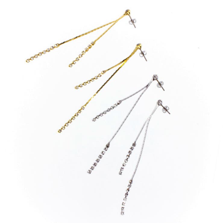 片側17石のラインストーンが揺れて輝きます。全体的にしなやかな作りで、手触りもなめらか地金をシルバーとゴールドからお選びいただけます。チタン製ポストを使用していますので、金属アレルギーの方にも比較的安心してお使いいただけます。安心の日本製・国産アクセサリーです。サイズ:縦8.1mm×横2.0mmポストの長さ:10.0mmポストの太さ:0.7mm素材:真鍮製(プラチナ・ロジウムコーティング)ラインストーンチタン製ポスト返品・交換について購入後の交換は受け付けておりません。予めご了承ください。返品を希望される場合は購入履歴一覧の「ショップへの問い合わせ」よりお問い合わせください。=========================複数配送先指定について1件の注文に対して、異なる住所への配送は対応出来かねます。恐れ入りますが、異なる住所へ配送をご希望の場合、配送先毎に分けて注文いただきますようお願い申し上げます。【アクセサリーWOMEN】シルバー ゴールド