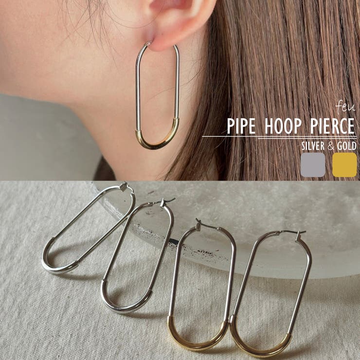 【PIPE HOOP PIERCE】オーバル型のロングフープピアス。真下にパイプを施して2層になったフォルム。スッキリとしたスマートなデザインです。大ぶりなルックスなので存在感も抜群。デイリーからパーティーシーンまで様々なシーンで活躍します。カラーはシルバー・ゴールドの2色展開になります≪サイズ詳細≫・53×24mm ≪重量≫・片耳 約4.8g------------------------------≪素材≫・真鍮 -----------------------------≪注意事項≫○お取扱いに関して・メッキ商品は変色しやすい為、こまめなお手入れを心がけて下さい。・長期放置やスプレー香料などのご使用はお避け下さい。・メッキ製品はアレルギー体質の方や体調が低下している方はかぶれる事があります。商品による怪我、アレルギートラブルには弊社では責任負いかねますので十分ご理解頂いた上でご使用お願いします。 ○品質に関して・お使い頂くのに問題ない程度の、多少のキズ・汚れ・へこみ・メッキムラがある場合があります。・入荷時期により若干のカラー・仕様の変更がある場合がございます。・モニターやお使いの環境により実際の商品と多少色味が異なって見える場合がございます。以上をご了承の上お買い求めください。#ピアス#フープ#華やか#キャッチレス#韓国ファッション#新作返品・交換について購入後の交換は受け付けておりません。予めご了承ください。返品を希望される場合は購入履歴一覧の「ショップへの問い合わせ」よりお問い合わせください。=========================複数配送先指定について1件の注文に対して、異なる住所への配送は対応出来かねます。恐れ入りますが、異なる住所へ配送をご希望の場合、配送先毎に分けて注文いただきますようお願い申し上げます。【アクセサリーWOMEN】シルバー ゴールド F