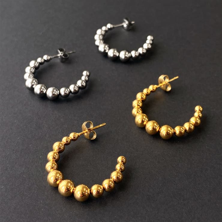 グラデーションに並べたメタルボールがアクセントのステンレス素材のデザインフープピアス。艶のある輝きが上品に存在感を放ち、お顔を美しく引き立ててくれます。メタル素材でどんなコーデにも合わせやすく、幅広いシーンで使えるのも嬉しいポイントです。※お肌にやさしく、錆びにも強いのが特徴のステンレス素材です。 ■素材ステンレス(SUS316L) ■サイズ(縦)25.5mm×(横)25.5mmメタルボール:3.0〜5.0mm 返品・交換について購入後の交換は受け付けておりません。予めご了承ください。返品を希望される場合は購入履歴一覧の「ショップへの問い合わせ」よりお問い合わせください。=========================複数配送先指定について1件の注文に対して、異なる住所への配送は対応出来かねます。恐れ入りますが、異なる住所へ配送をご希望の場合、配送先毎に分けて注文いただきますようお願い申し上げます。【アクセサリーWOMEN】シルバー ゴールドシルバー ゴールド