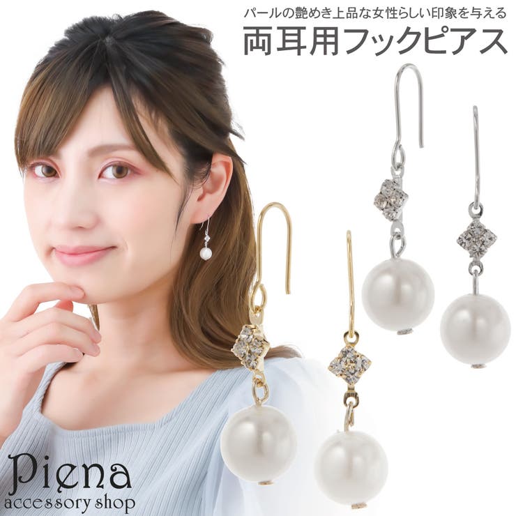 素材真鍮製 ロジウムコーティングゴールドコーティングキュービックジルコニアフェイクパールサイズ全長:約30.0mmモチーフ縦:約15.0mmパール直径:約10.0mmポスト太さ:約0.7mm 女性らしい上品な横顔を演出してくれるフックピアス。 艶やかなパールと一石のキュービックジルコニアをあしらったエレガントなデザインです。 石の裏面は、ジュエリーのように光を通す裏抜きがされているので、光に反射するとキラキラと煌めき華やかさをプラス。洗練されたピュアな輝きが上品で知的な横顔を演出します。 シンプルながらも さりげないデザイン性が効いており、着けるだけで耳元を華やかに照らしてくれます。控えめながらも洗練された大人可愛いアイテムは、デイリースタイルにはもちろん、オケージョンなどシーンに合わせてコーディネートをお楽しみ頂けます。記念日、自分へのご褒美、プレゼント、クリスマス、ホワイトデー、誕生日など、様々なイベントの贈り物にぴったりのカジュアルジュエリーです。返品・交換について購入後の交換は受け付けておりません。予めご了承ください。返品を希望される場合は購入履歴一覧の「ショップへの問い合わせ」よりお問い合わせください。=========================複数配送先指定について1件の注文に対して、異なる住所への配送は対応出来かねます。恐れ入りますが、異なる住所へ配送をご希望の場合、配送先毎に分けて注文いただきますようお願い申し上げます。【アクセサリーWOMEN】シルバー ゴールド