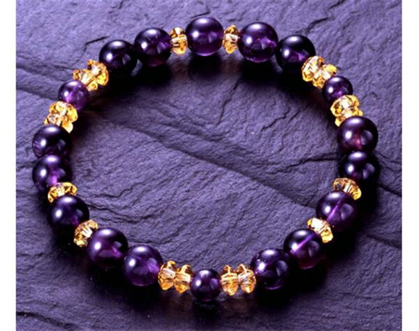 ■商品紹介商品番号:ns-im-k10608★開運の万能石、水晶のブレスレット! *水晶は古代より、不思議な霊力がある石と伝えられています。 *石内部に自然界のエネルギーが宿されクリスタルパワーとなり、それを身につけている人を災いから守り、数々の奇跡を起こすと言われています。 ■サイズ・容量・規格サイズ内径 約 19 cm重量約 15 g生産国日本 <材質> 紫水晶/8mm珠×15個・6mm珠×3個 黄水晶/6×3mm×18個 <付属品> 専用巾着袋■注意事項■こちらの商品はメーカー直送品となります。■メーカーに在庫が無い場合はキャンセルさせていただくことがございます。■お客様ご都合による返品・交換は出来ませんのでご注意ください■北海道、沖縄、離島については別途送料が掛かります。