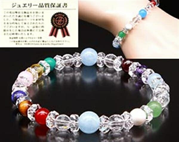 ■商品紹介商品番号:ns-im-k13416★12か月の誕生石を身に付けて幸せを願う!*色とりどりの12か月の誕生石を1つのブレスレットに! 1月:ガーネット(友情・信頼・貞節) 2月:アメジスト(邪気祓い・癒し) 3月:アクアマリン(ストレス緩和) 4月:白水晶(願望成就・浄化) 5月:アベンチュリン(ストレス緩和) 6月:ホワイトハウライト(幸運招来) 7月:カーネリアン(目標達成・成功) 8月:タイガーアイ(勝負運・仕事運) 9月:ラピスラズリ(恋愛成就・美) 10月:ローズクォーツ(恋愛成就・美) 11月:黄水晶(金運・財運) 12月:ハウライトトルコ(ポジティブ) ■サイズ・容量・規格サイズ内周:約 17 cm重量約 12 g個装状態PP袋生産国日本<材質>白水晶:6mm珠×1個、6mm(カット)×6個、6x3mm(カット)×20個黄水晶・アメジスト:6mm(カット)各1個タイガーアイ・ローズクォーツ・アベンチュリン・カーネリアン・ガーネット・ラピスラズリ・ホワイトハウライト・ハウライトトルコ:6mm珠×各1個アクアマリン:8mm珠×2個、6mm珠×1個<付属品>専用巾着袋、ジュエリー品質保証書■注意事項■こちらの商品はメーカー直送品となります。■メーカーに在庫が無い場合はキャンセルさせていただくことがございます。■お客様ご都合による返品・交換は出来ませんのでご注意ください■北海道、沖縄、離島については別途送料が掛かります。