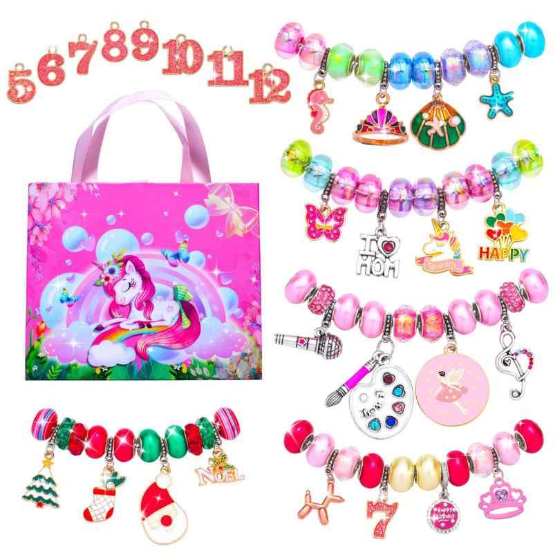 2手作りブレスレット キット キッズ 女の子 DIY ピンク 数字 ペンダント かわいい ブレスレット