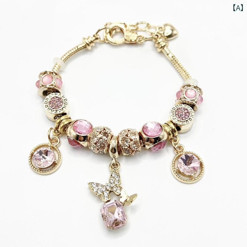 ブレスレット レディース 女性用 DIY ピンク系 ジルコニア 蝶々 バングル アクセサリー かわいい おしゃれ