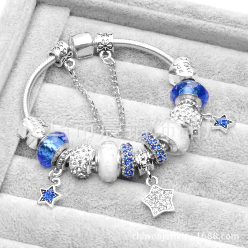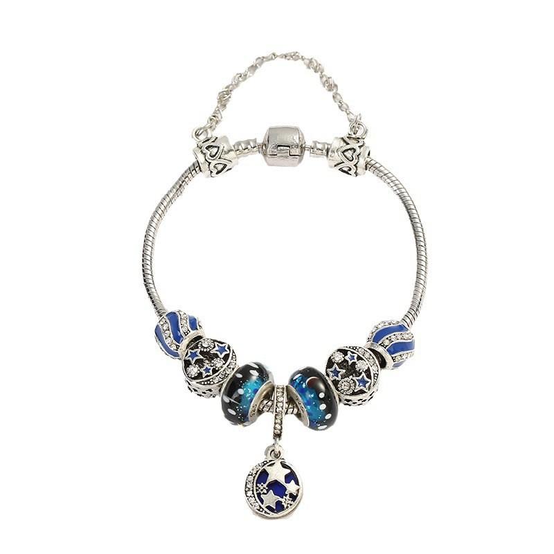2ブレスレット レディース 女性用 ブルー 琉璃 星空 ヨーロッパ アクセサリー ファッション 星 月 DIY 手作り