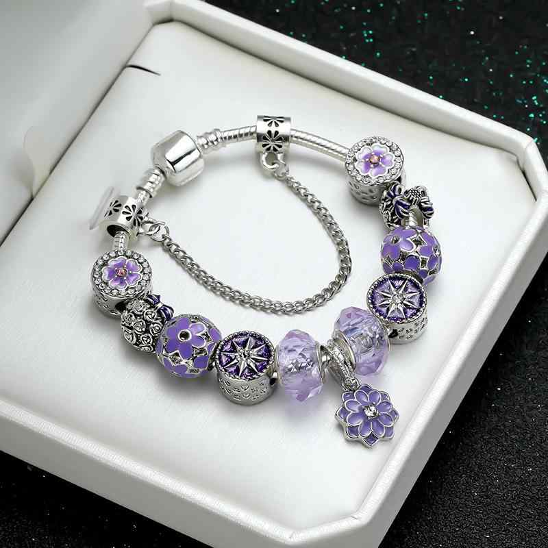 2ブレスレット レディース 女性用 紫 水晶 デイジー 花柄 フラワーモチーフ 手環 アクセサリー