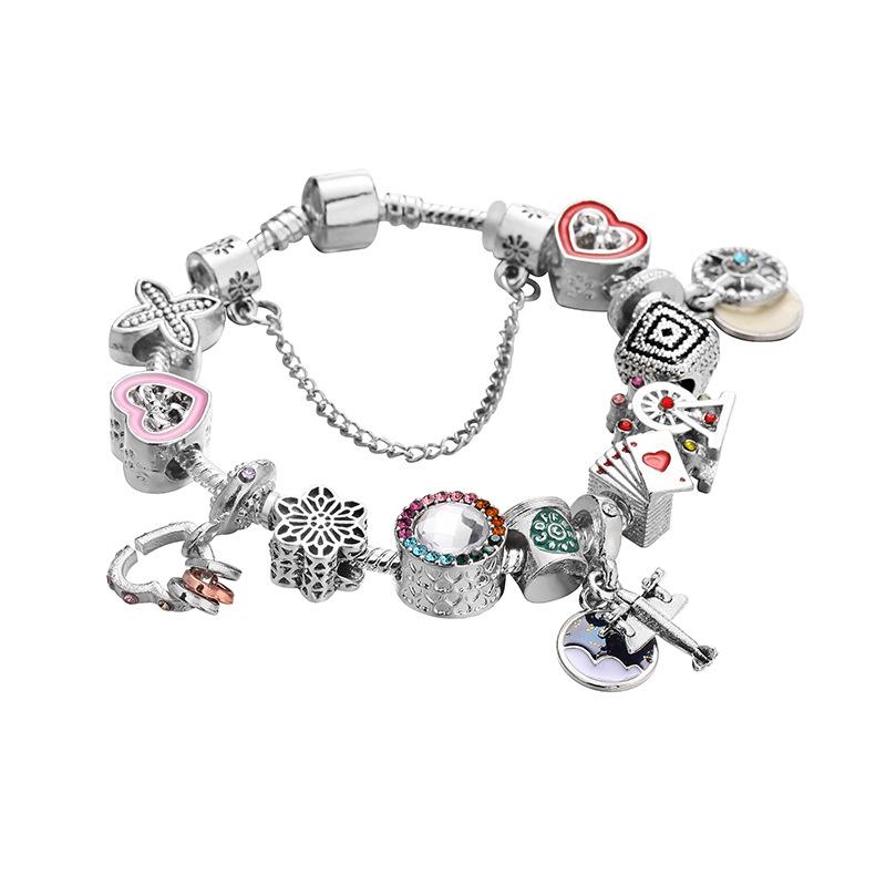 ブレスレット レディース キラキラ 星 ハート 飛行機 チャーム 女性 デザイン かわいい おしゃれ 電気メッキ加工・素材: 合金・処理: 電気メッキ・デザイン: その他・カラー: シルバー・サイズ: 18cm, 19cm, 20cm, 21cm・スタイル: ナチュラル、スイート