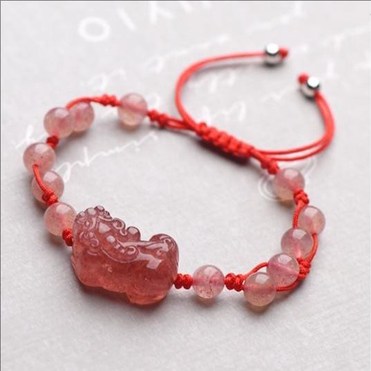 2ブレスレット レディース ピンク水晶 ヒキュウ ウサギ 兎 ラッキーアイテム お守り 腕飾り アクセサリー かわいい ガーリー フェミニン