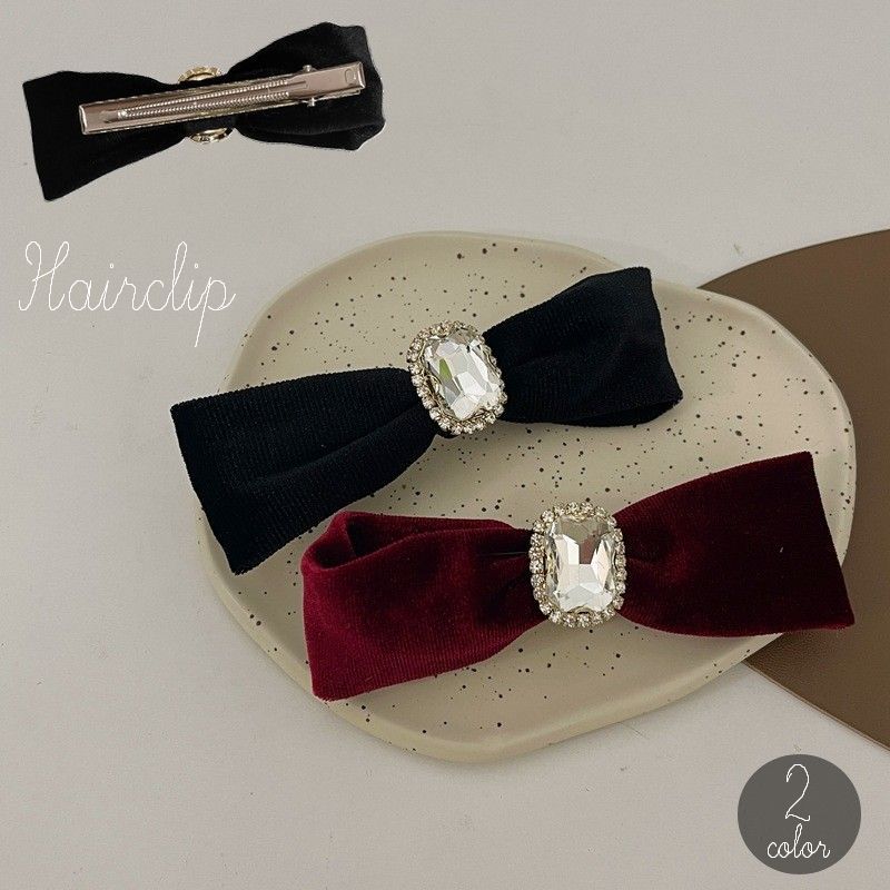 ベロア調のリボンにビジューの飾りが付いたクラシカルな雰囲気のヘアクリップ。 ダウンヘアーのサイドやまとめ髪のポイントにぴったりです♪ 【サイズについて】 画像をご参照ください。 【カラーについて】 生産ロットにより柄の出方や色の濃淡が異なる場合がございます。 お使いのモニターや撮影時の光の加減などにより 画像と実際の商品のカラーが異なる場合もございます。 予告なしにカラーやデザインなどの変更がある場合もございます。