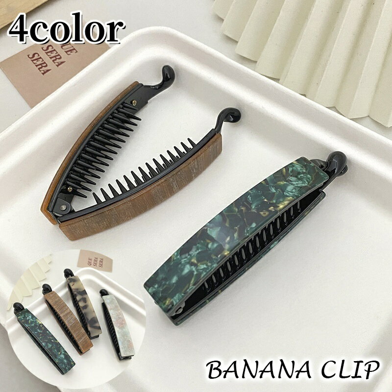 シックなカラーががおしゃれなバナナクリップ。 挟んで留めるだけの簡単ヘアアレンジができて◎ 【サイズについて】 画像をご参照ください。 【カラーについて】 生産ロットにより柄の出方や色の濃淡が異なる場合がございます。 お使いのモニターや撮影時の光の加減などにより 画像と実際の商品のカラーが異なる場合もございます。 予告なしにカラーやデザインなどの変更がある場合もございます。