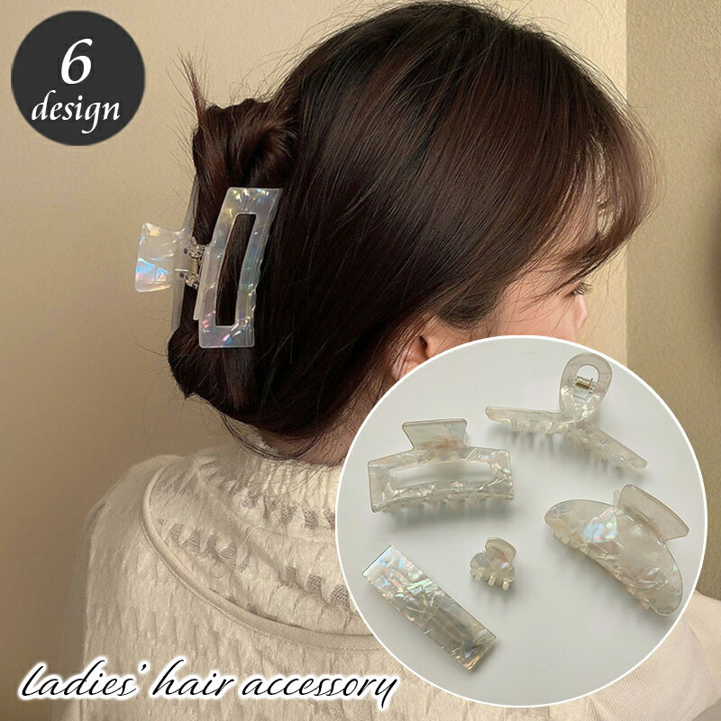 光沢感のあるシェル風デザインがおしゃれなレディース用ヘアアクセサリー。 バンスクリップ、バレッタなど用途に応じて選べる6デザイン♪ カジュアルからきれいめまでシーンを問わず使えて◎ 【サイズについて】 画像をご参照ください。 【カラーについて】 生産ロットにより柄の出方や色の濃淡が異なる場合がございます。 お使いのモニターや撮影時の光の加減などにより 画像と実際の商品のカラーが異なる場合もございます。 予告なしにカラーやデザインなどの変更がある場合もございます。 【素材について】 アクリル