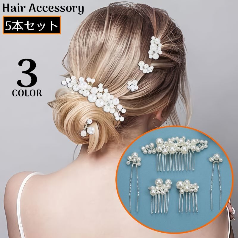 パール調のお洒落なヘアアクセサリー5点セットです。 まとめ髪に指すだけで、華やかな印象に♪ シンプルだけど存在感があり、上品なデザイン★ 結婚式や卒業式などフォーマルな場所から普段使いにも◎ 和装・洋装どちらとも相性がよく持っておくと便利なアイテムです! 【サイズについて】 画像をご参照ください。 【カラーについて】 生産ロットにより柄の出方や色の濃淡が異なる場合がございます。 お使いのモニターや撮影時の光の加減などにより 画像と実際の商品のカラーが異なる場合もございます。 予告なしにカラーやデザインなどの変更がある場合もございます。 【素材について】 合金