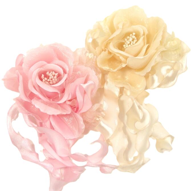 上品な華やかさのあるコサージュ サテンと光沢のあるシフォンが重なった花びら かちっと型押ししてあり立体感がありますが、軽いです ウェーブのついたリボンがかわいい フォーマルな雰囲気に遊び心をちょこっとプラス 単色で使いやすいおしゃれなアクセサリー 裏にブローチピンとクリップがついています 【サイズ】10 x 9 (+ 下へ揺れるリボン 8 cm)x 高さ 4 cm ※ メール便不可× ※ 北海道・沖縄へはレターパックプラスで発送します。その場合は代引き・日時指定不可(再配達時は指定可) ※ リボンの曲がり癖や先端のわずかなほつれはご容赦ください。 。*・。*・ 類似品はコチラ 。*・。*・ 。*・。*・。*・。*・。*・。*・。*・