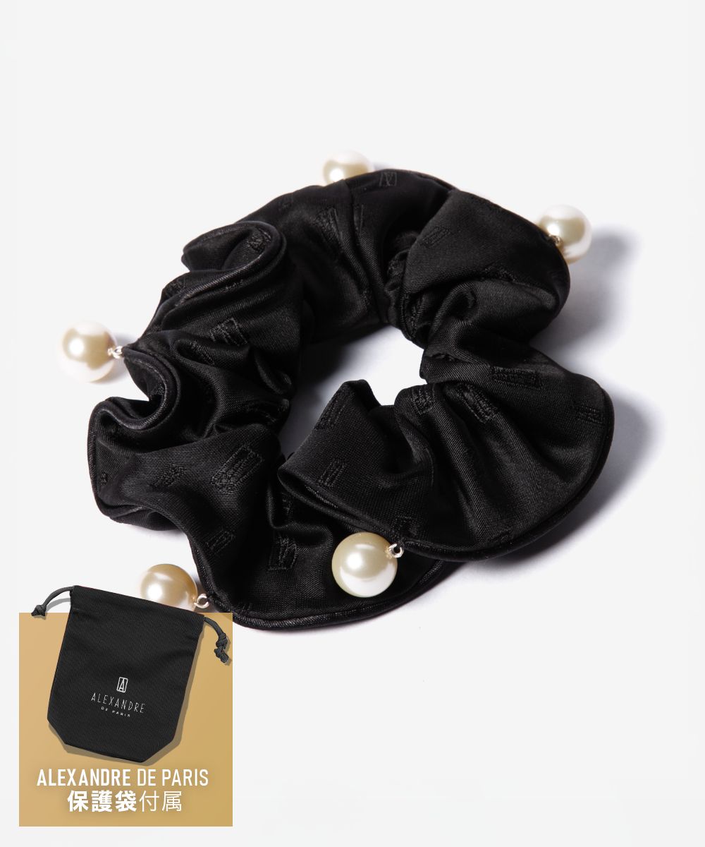 ヘアアクセサリー レディース シュシュ ブラック 大きめ ボリューム 豪華感 サテン ヘアゴム まとめ髪 高見え 大人かわいい