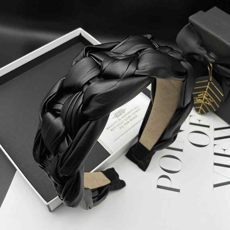 ヘアバンド レディース 豪華感 レザー風 編み込み 幅広 白髪隠し 高め 洗顔 外出 ヘッドドレス ヘアアクセサリー